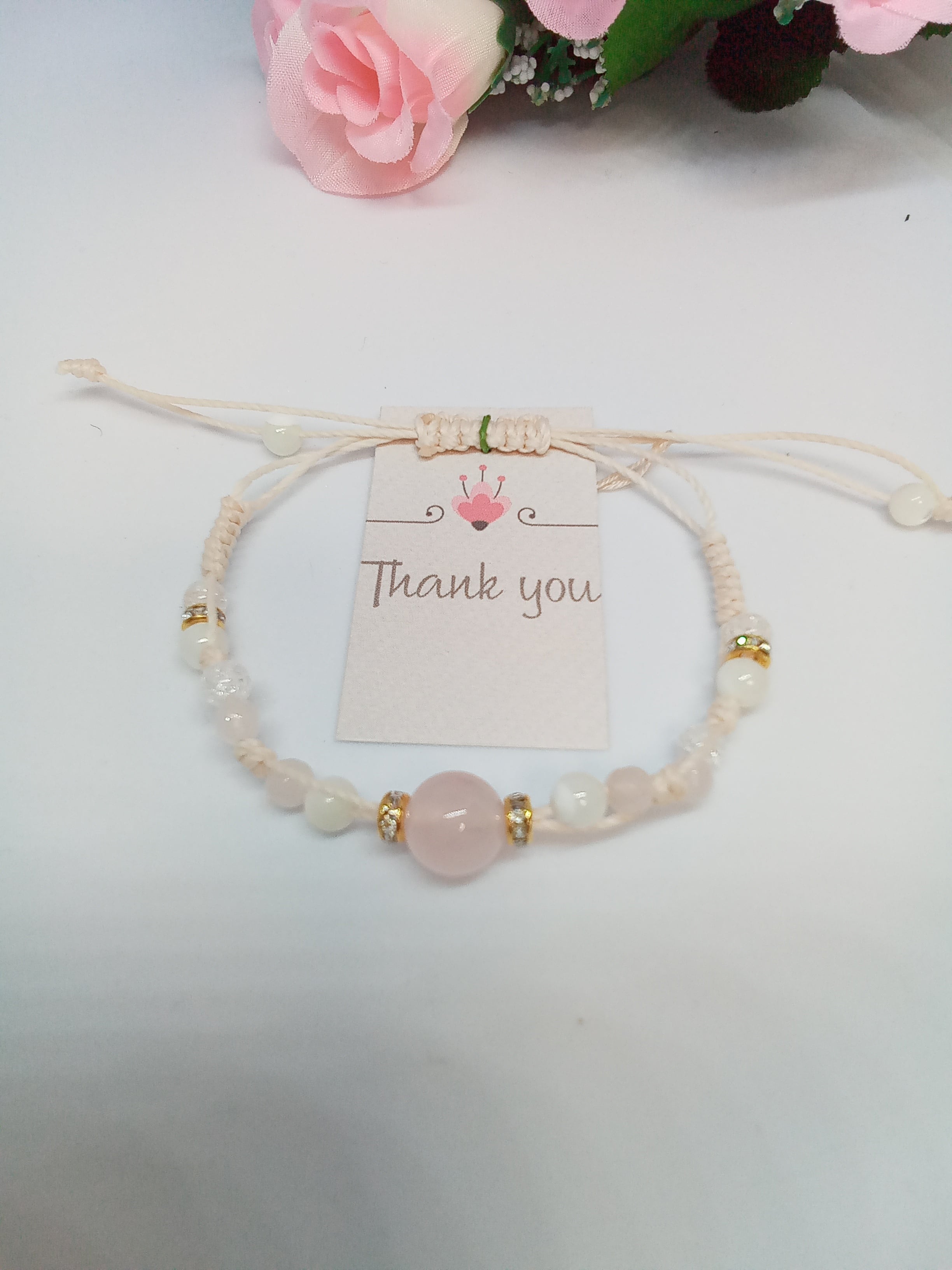 編み込みの紐はマクラメコードで薄いピンクです。