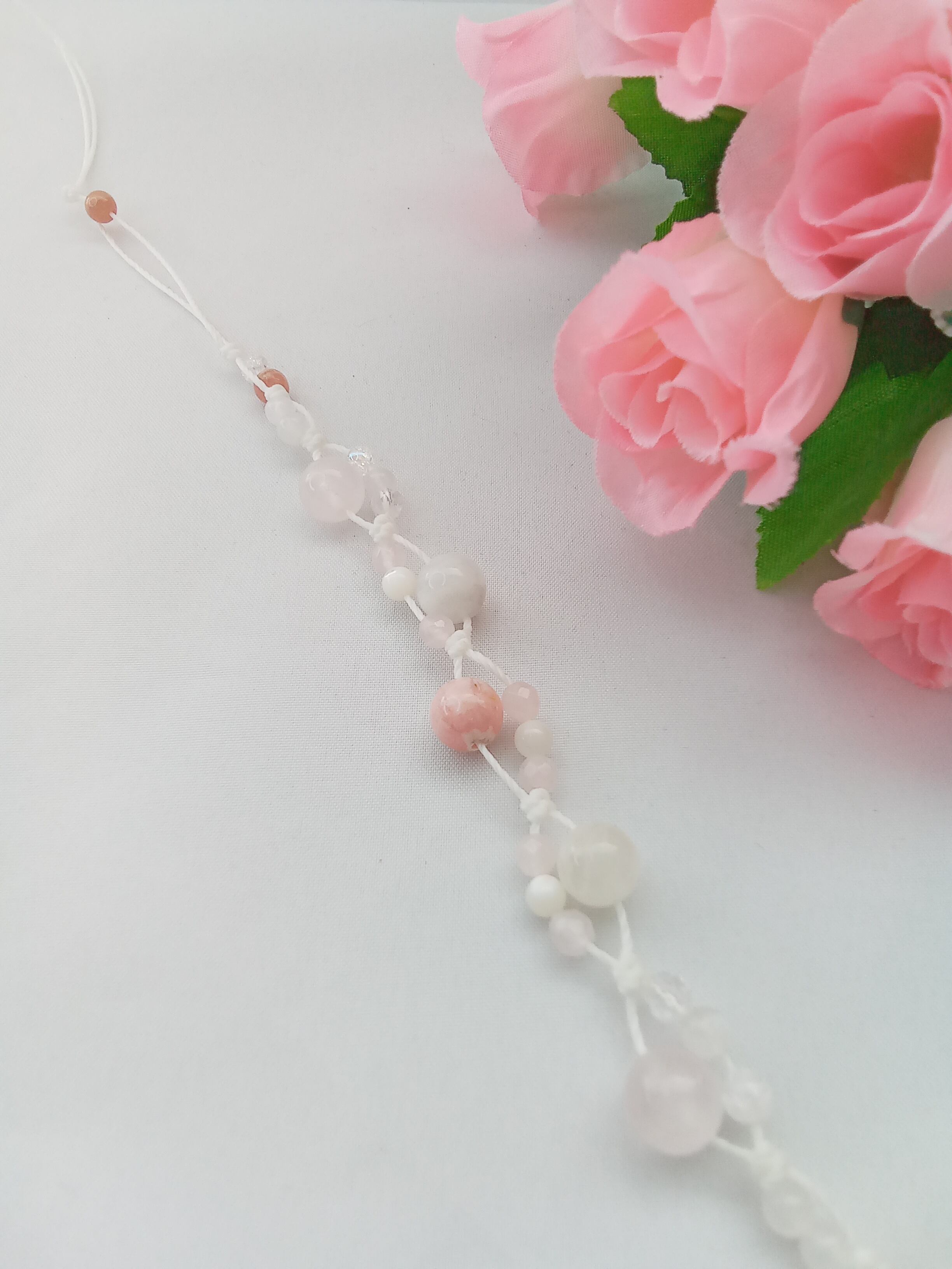 インカローズを真ん中にムーンストーンとローズクオーツをあしらいました。