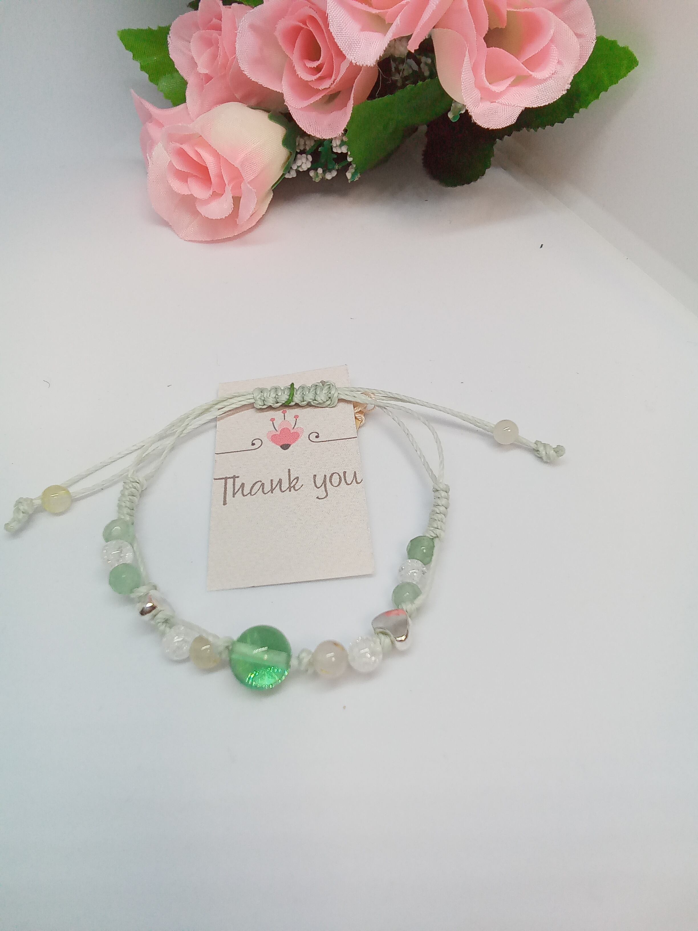 真ん中に8ミリのフローライトをあしらい、周りをアベンチュリン、クオーツで飾りました。